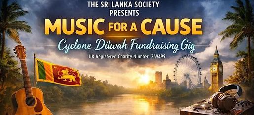 A charity music gig supporting communities affected by Cyclone Ditwah in Sri Lanka, hosted by the Sri Lanka Society