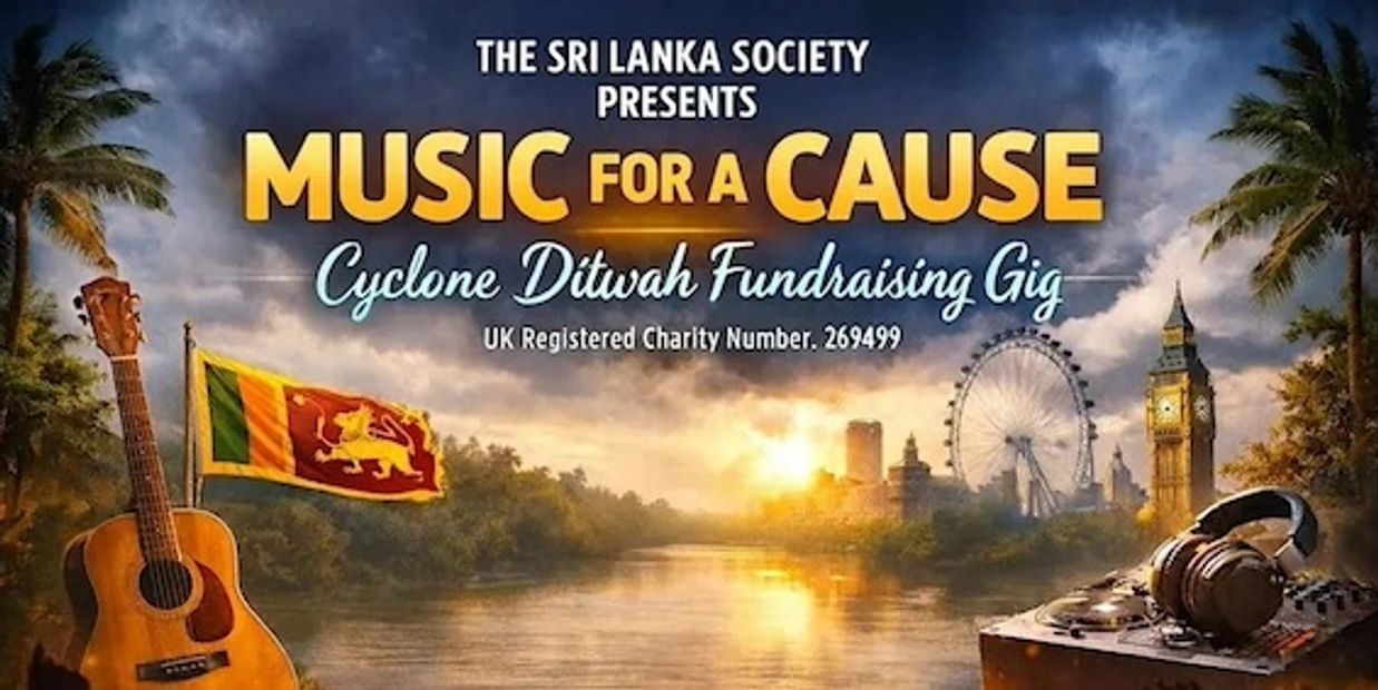 A charity music gig supporting communities affected by Cyclone Ditwah in Sri Lanka, hosted by the Sri Lanka Society.